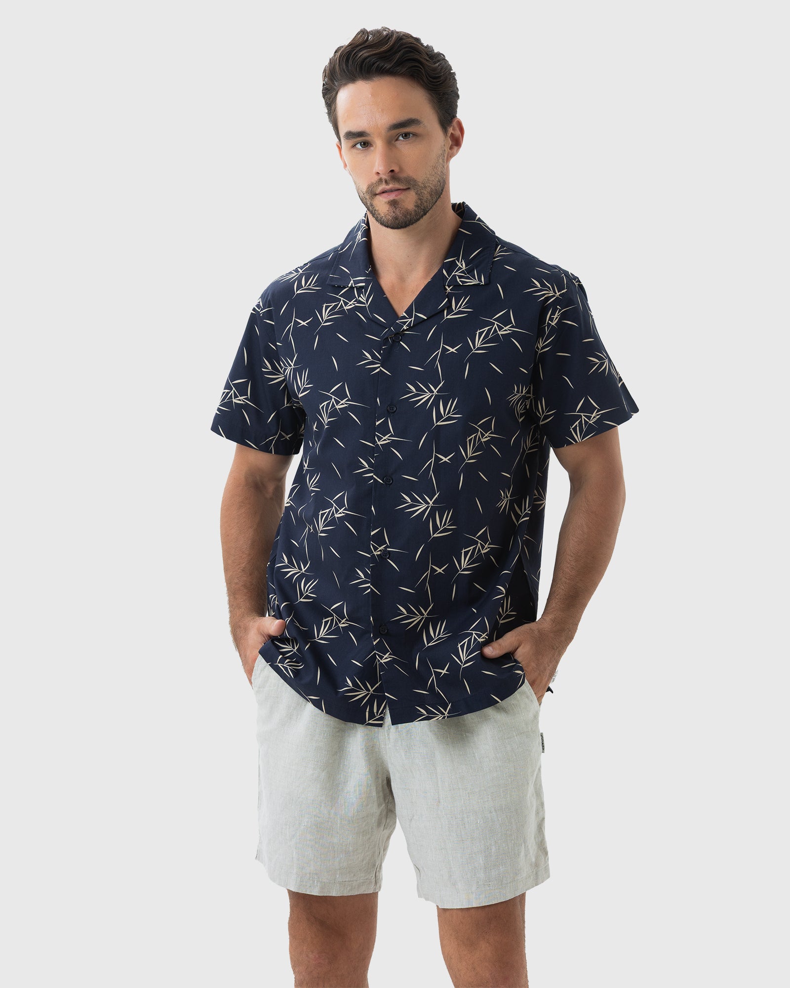 Coast Clothing Tropical Leaves Cotton Shirt - Classic Navy.