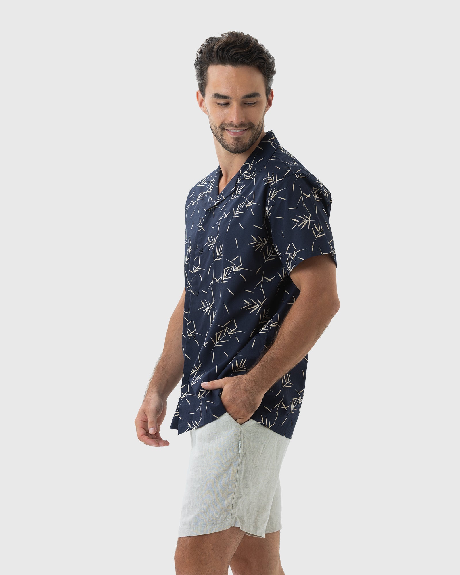 Elevate your summer style with the Coast Clothing Tropical Leaves Cotton Shirt, featuring a classic navy base adorned with a vibrant tropical leaf print. Perfect for beach parties, tropical vacations, or casual summer outings, this shirt effortlessly blends comfort with eye-catching design.