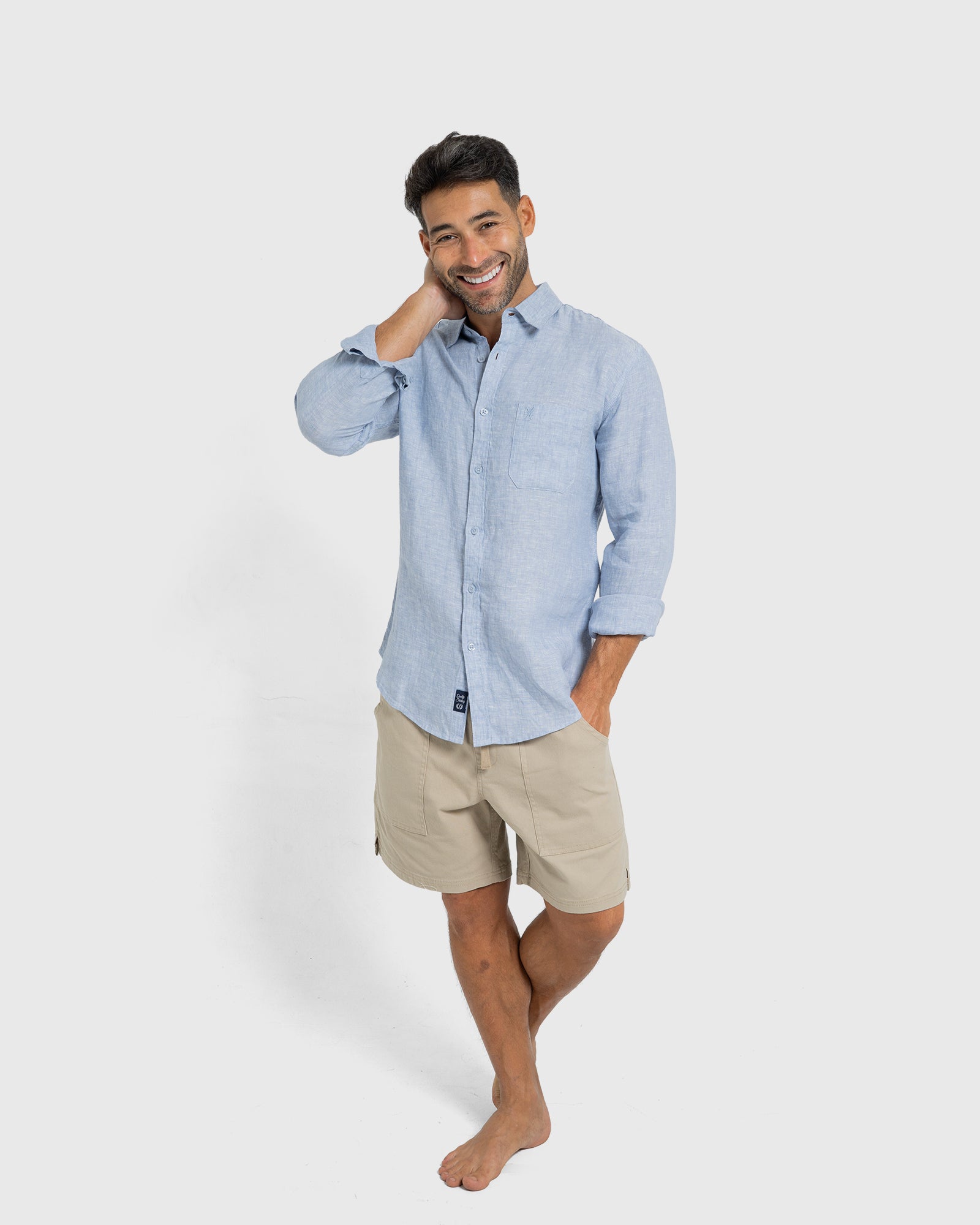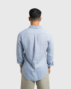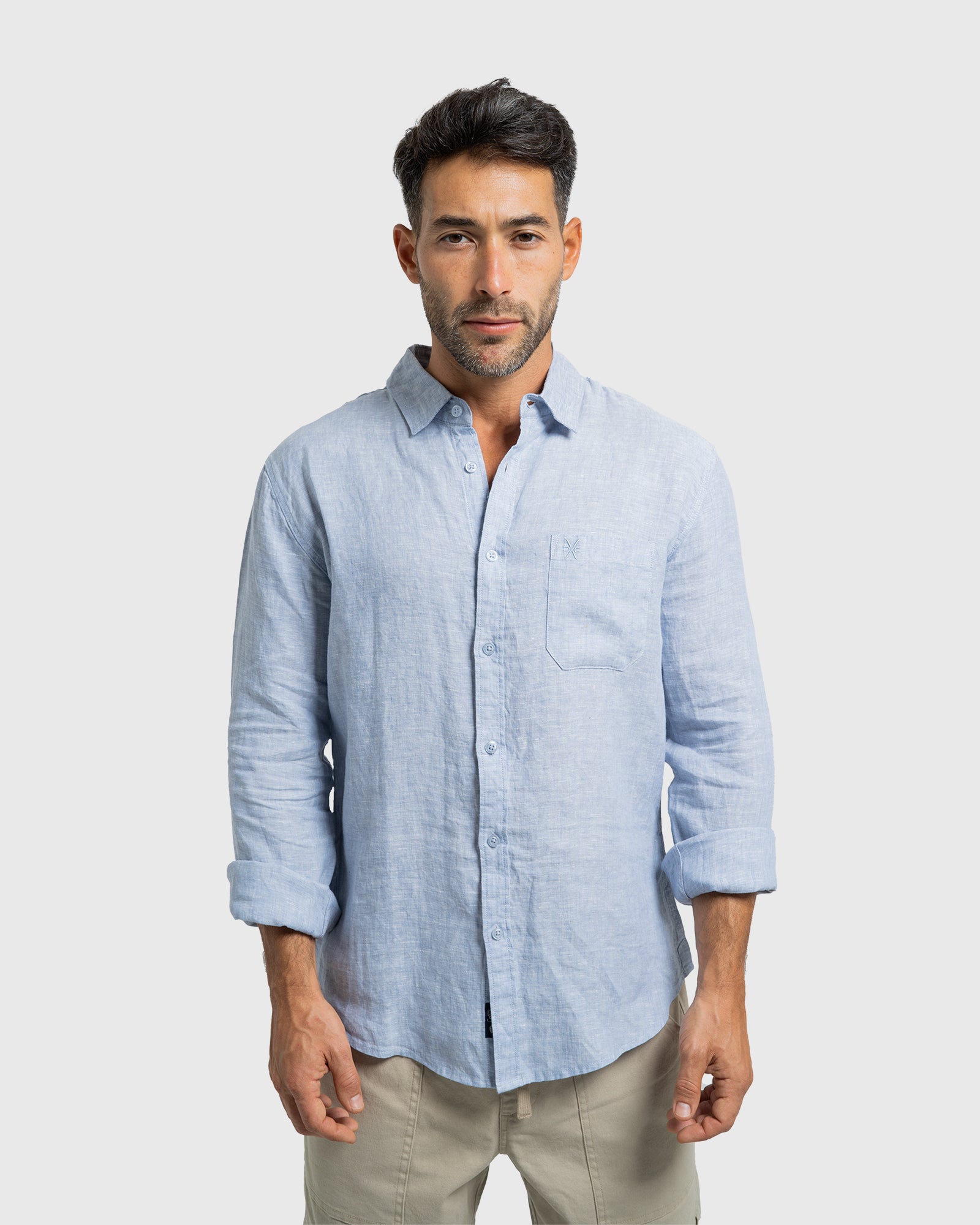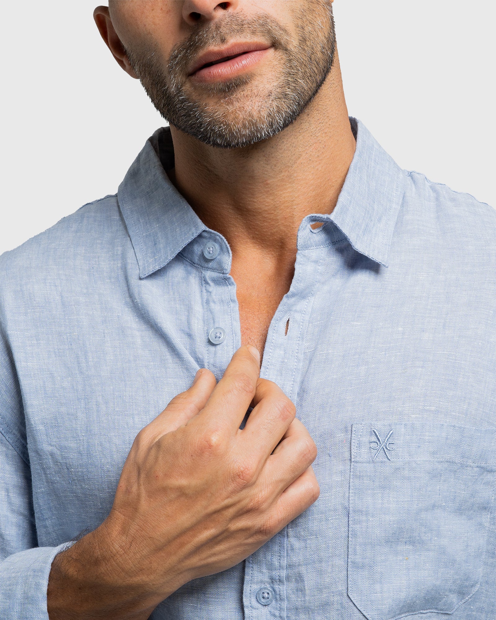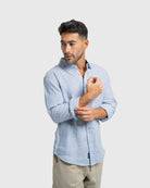 Men's Long Sleeve Linen Shirt - Blue Marle