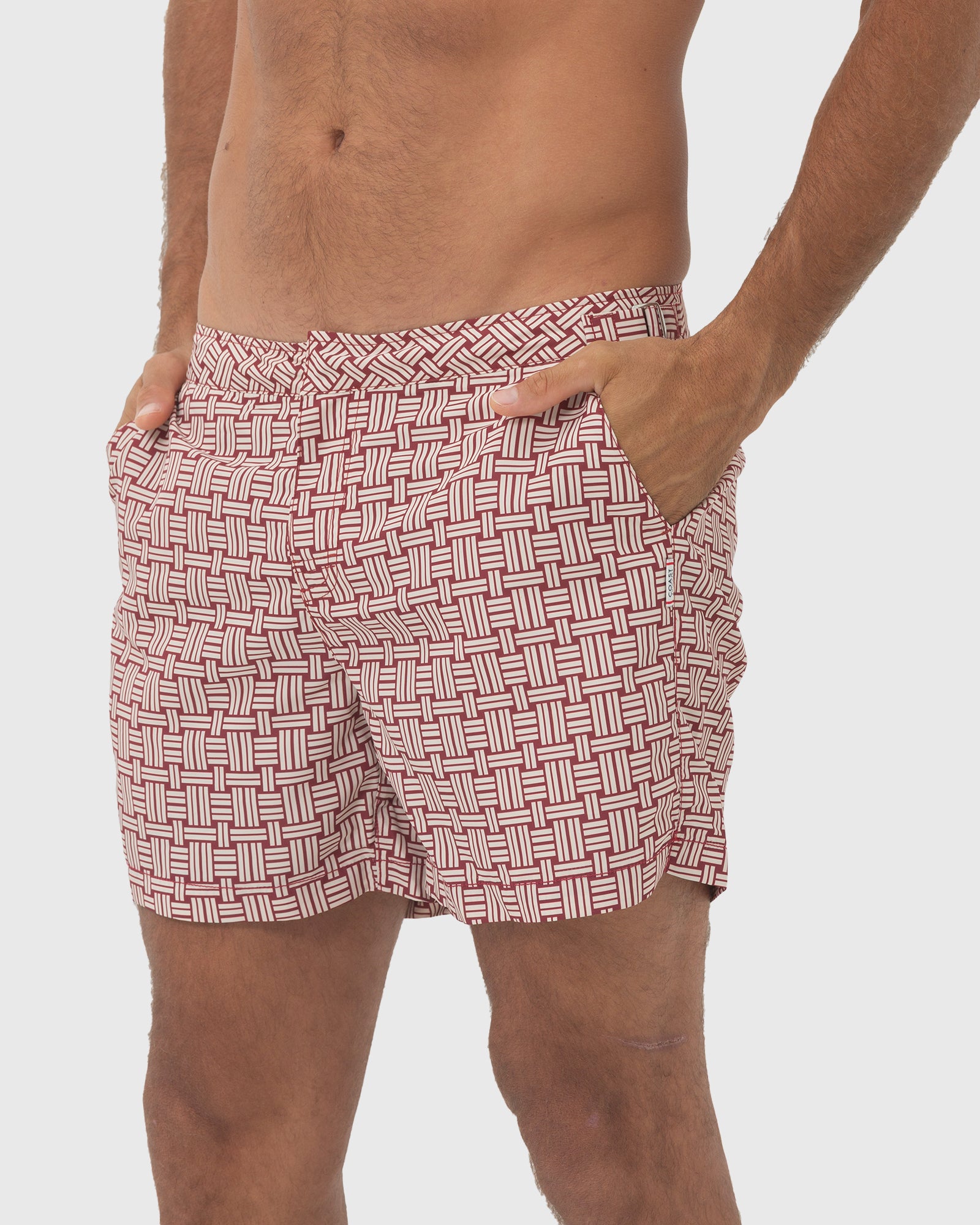 Engineered for clean lines and peak comfort, the Bombay Weave Swimshorts are made from premium recycled polyester that dries fast and wears even better. The tailored fit and 7" inseam strike a modern silhouette, while waist-adjustable metal side buckles lock in the perfect fit—no sag, no fuss. Built for the water, sharp enough for everywhere else.