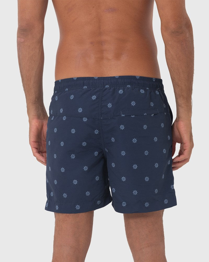 The Helms Swim Shorts showcase a distinctive white helms print on a navy base, offering a timeless and maritime-inspired look. Made from high-quality, quick-dry fabric, they ensure you stay comfortable both in and out of the water.