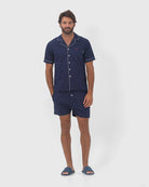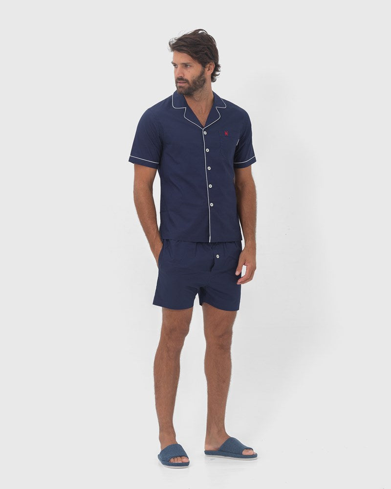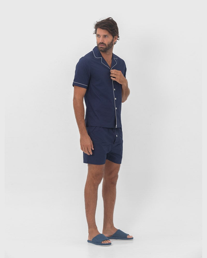 Sleep in style with the Paris PJ Set—crafted from crisp cotton poplin with satin piping for an elevated finish. This relaxed-fit summer essential features a short-sleeve button-up top and matching elastic-waist shorts for all-night comfort.