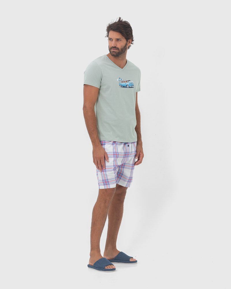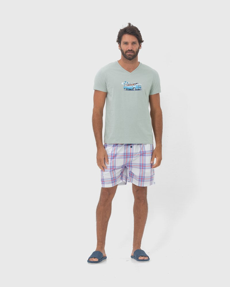 Unwind in style with the Road Tripping Mens Pyjamas, designed for breathable comfort and effortless wear. Made from 100% soft cotton, this set features a relaxed-fit jersey top and lightweight poplin shorts, perfect for warm nights. The elastic waistband, button fly, and side pockets add practicality, while the classic design keeps you looking sharp—even in your downtime.