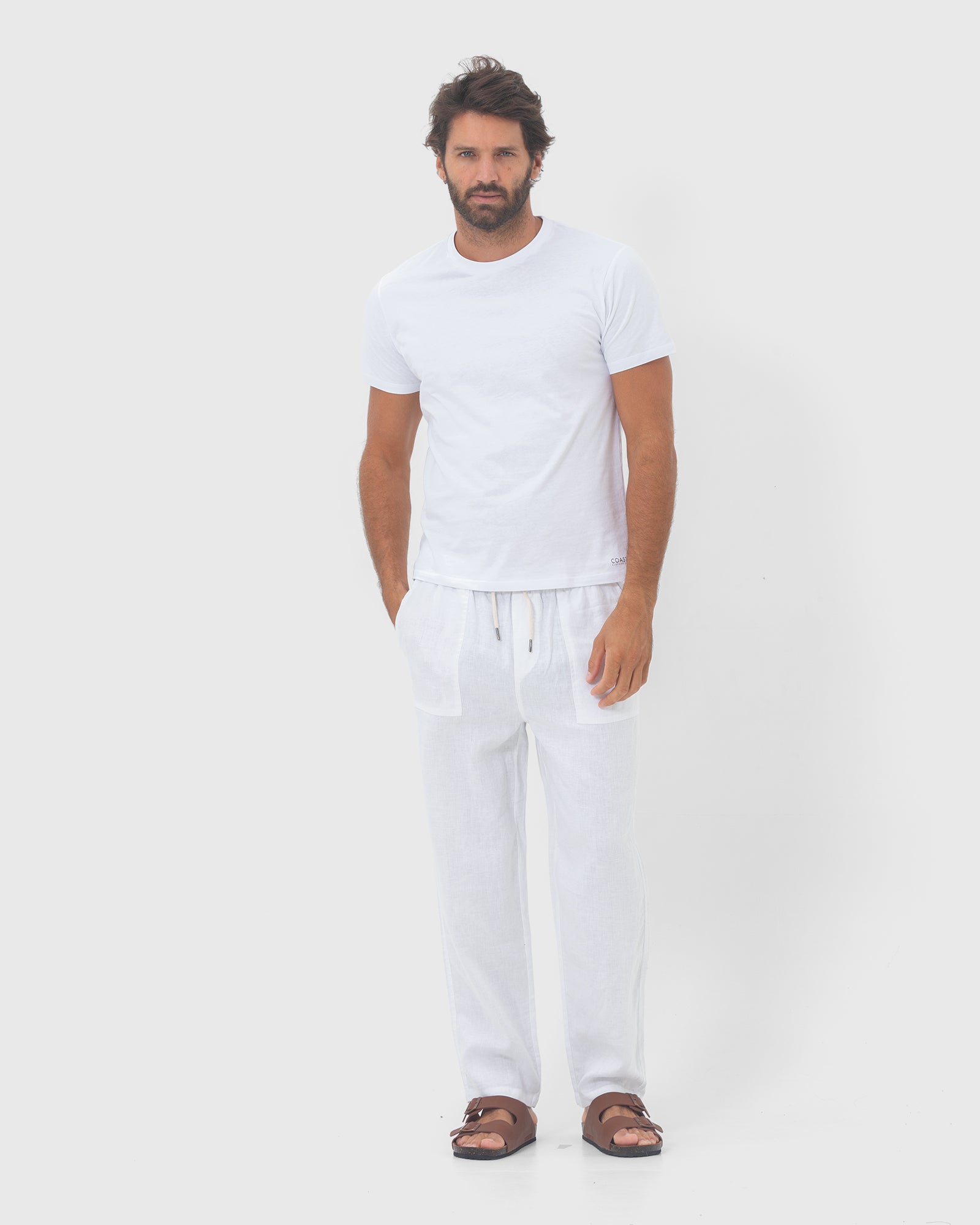 Light, breathable, and effortlessly stylish—the St Tropez Linen Pants in crisp white are made from 100% pure French linen for all-day summer comfort. With a relaxed fit and clean silhouette, they’re perfect for beach days, resort wear, or laid-back evenings.