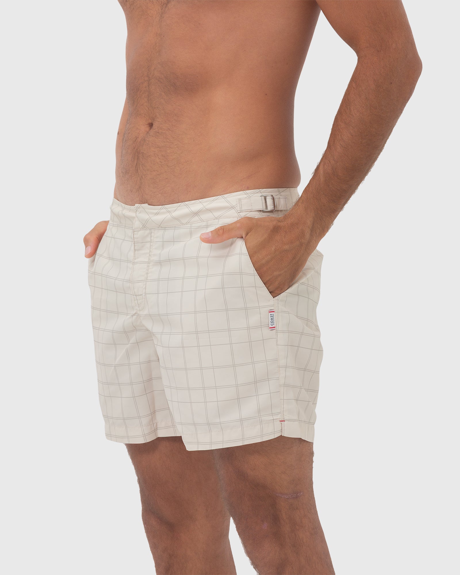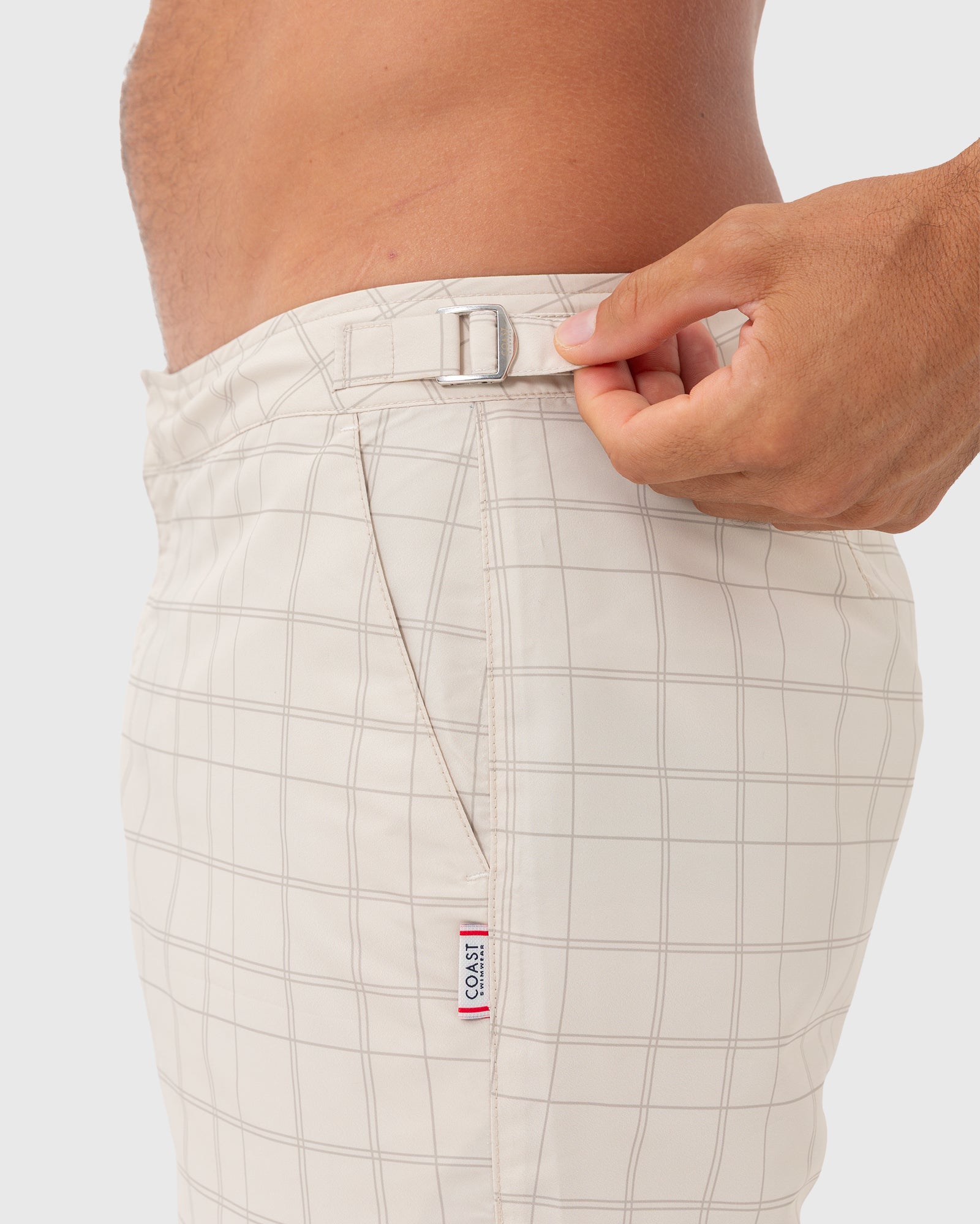 Engineered for clean lines and peak comfort, the Sandbar Swimshorts are made from premium recycled polyester that dries fast and wears even better. The tailored fit and 7" inseam strike a modern silhouette, while waist-adjustable metal side buckles lock in the perfect fit—no sag, no fuss. Built for the water, sharp enough for everywhere else.