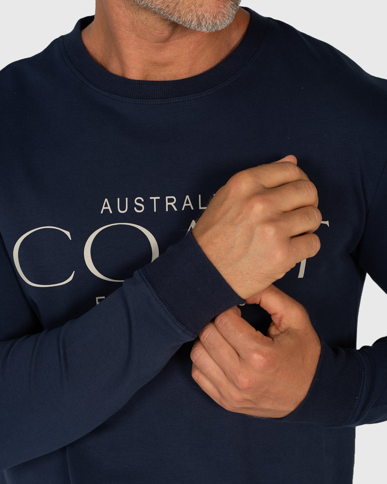 Navy crew neck top with Coast print