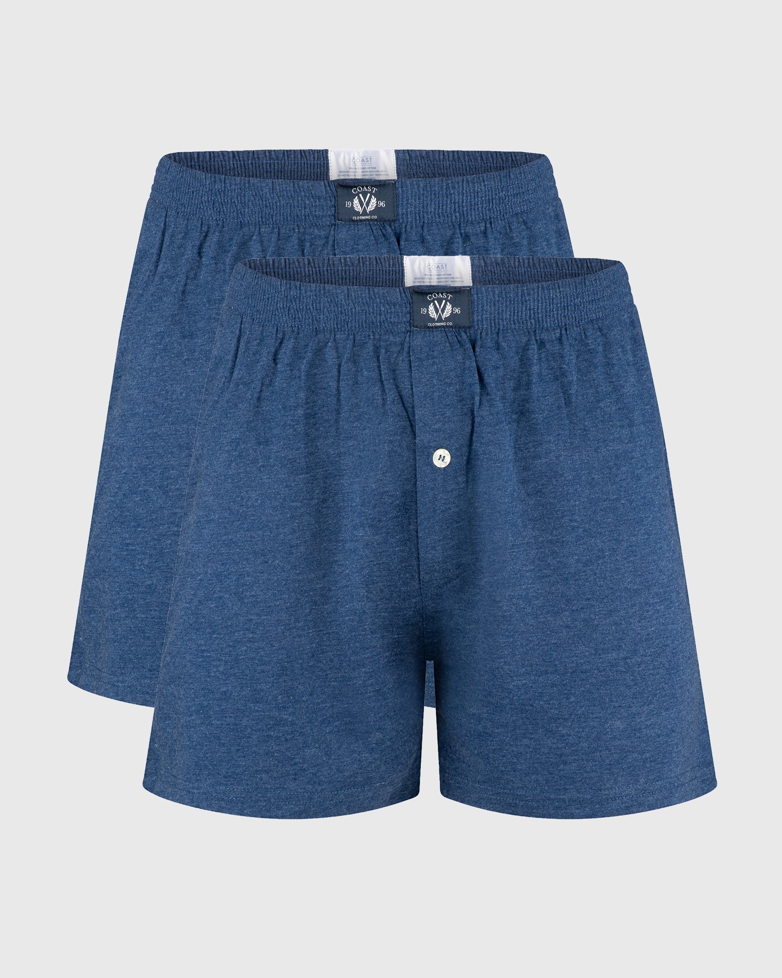 Perfect for downtime or daily wear, the Navy 2 Pack Boxer Shorts by Coast Clothing offer reliable comfort in a rich, classic tone. Finished with an elastic waistband for all-day support.
