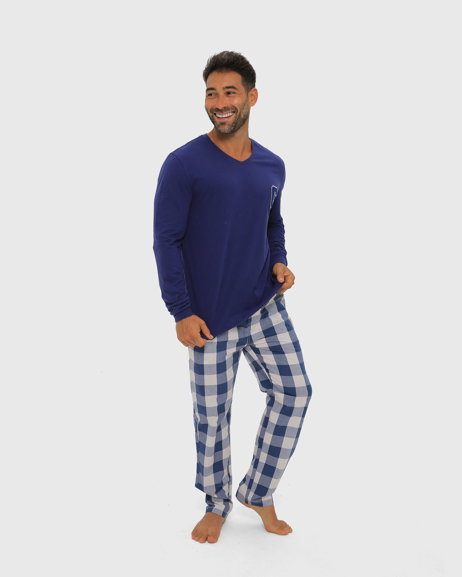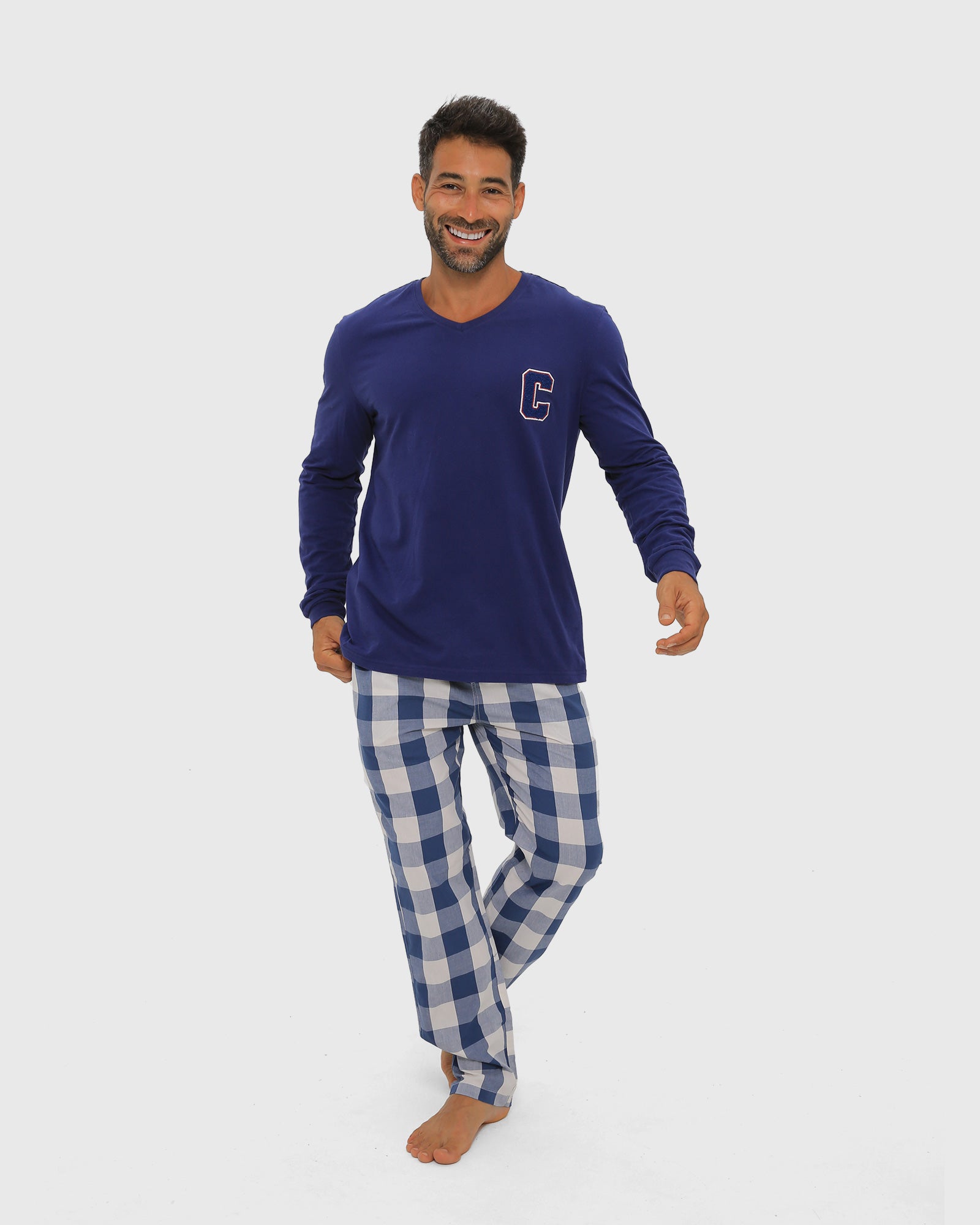 California Men's Pyjama Set – Navy Check | Coast Clothing