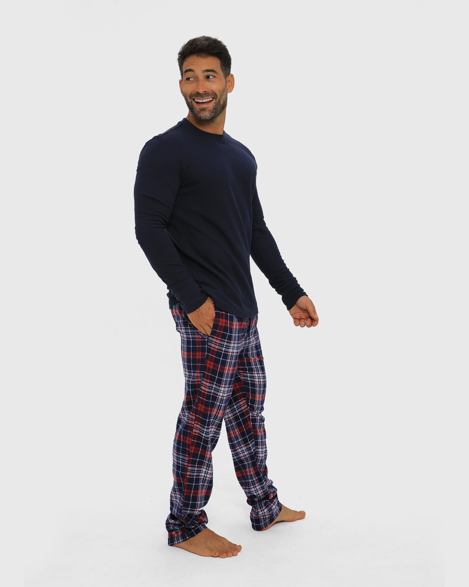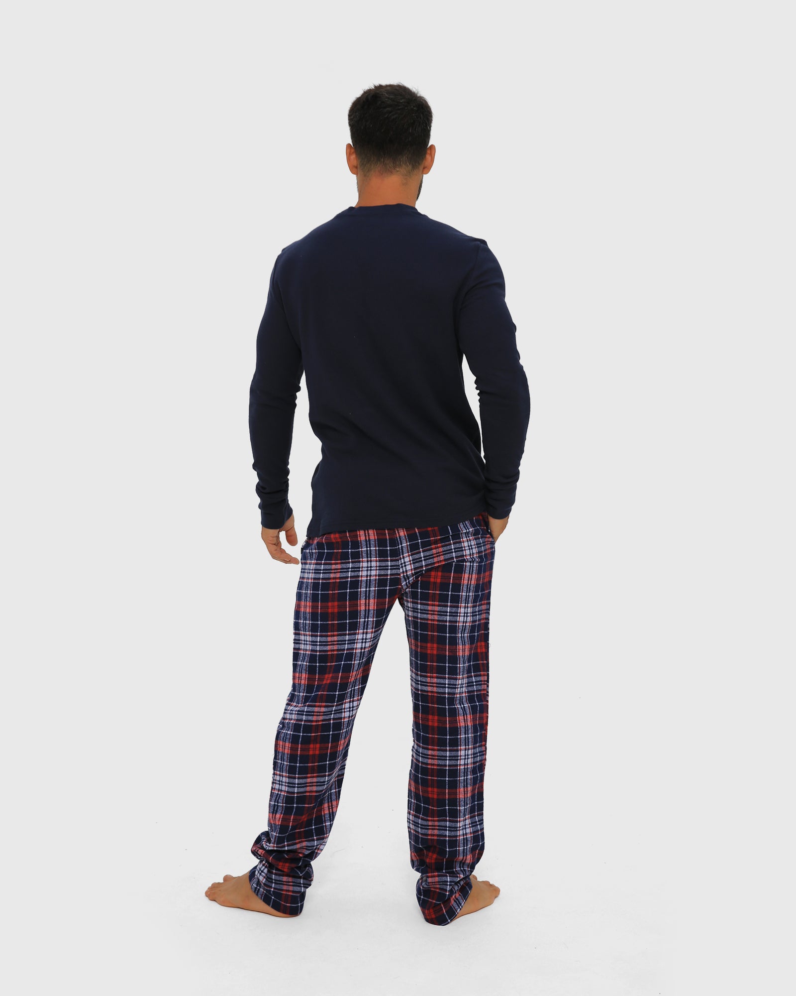 Stay cozy this winter with the Hands On Deck Pyjamas, featuring a navy waffle knit top and red, white & blue flannel pants. Made from 100% breathable cotton, this two-piece set offers the perfect blend of warmth, comfort, and coastal style.