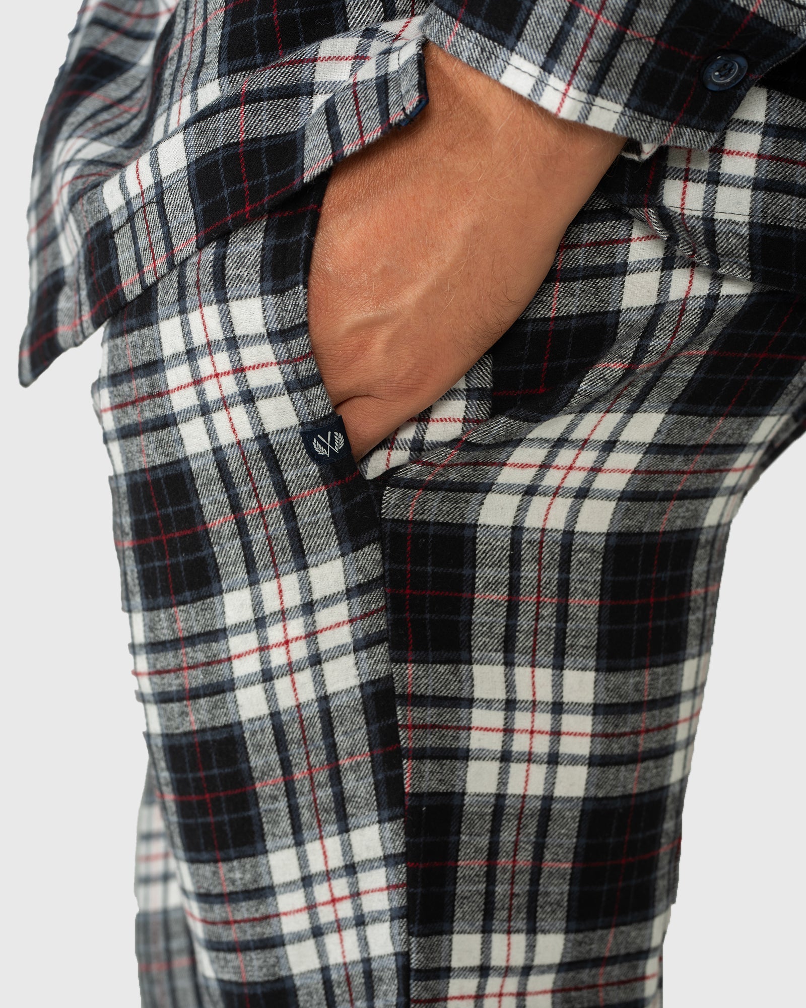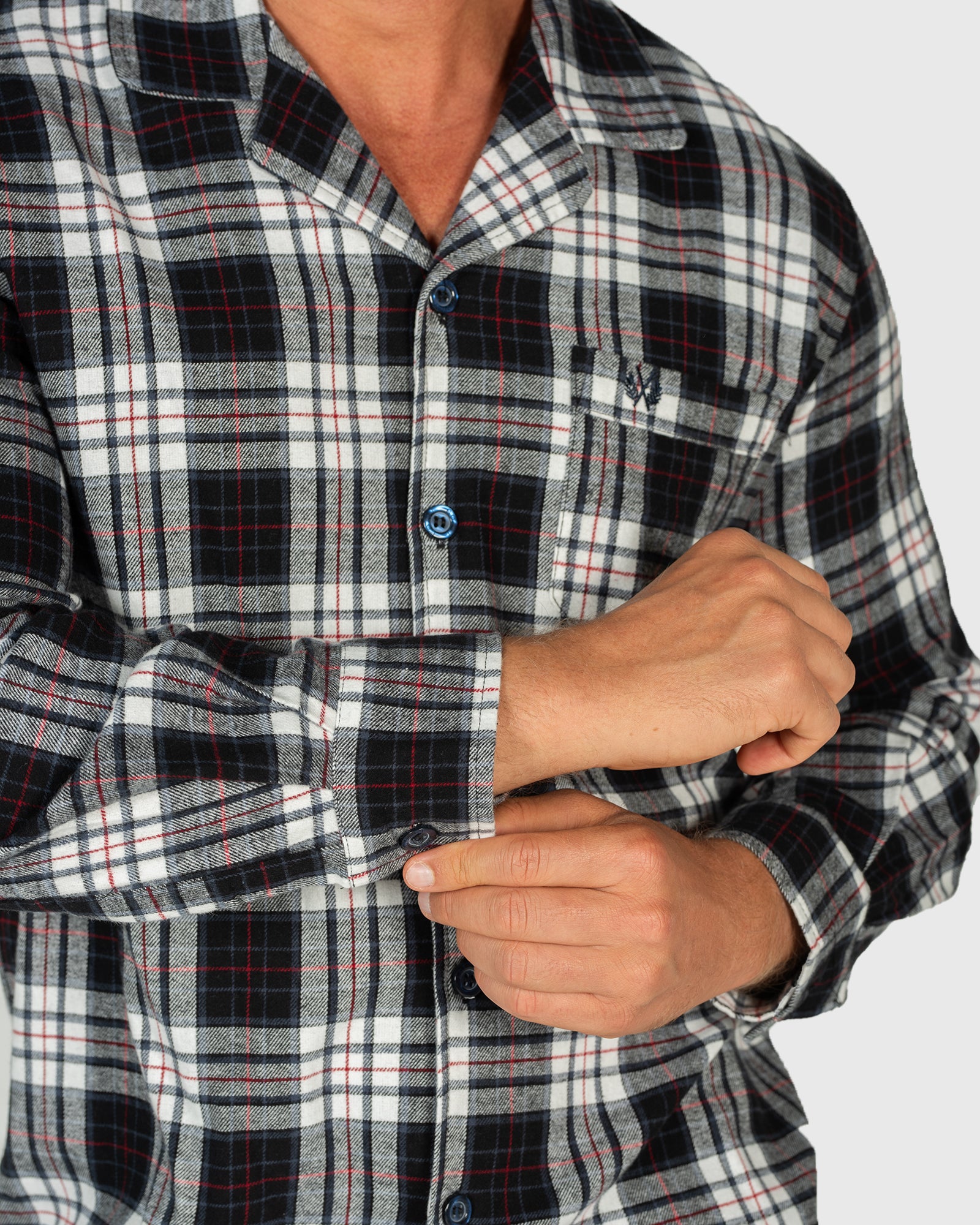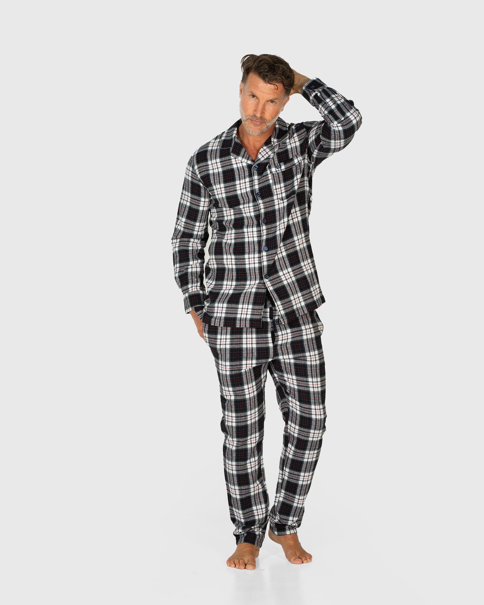 Stay warm in style with the Harbour Flannel Pyjamas—crafted from 100% soft cotton flannelette for all-night comfort. Featuring a classic button-through top and full-length pants in grey and red tones, this bestselling set is perfect for lounging or sleeping in cooler weather.