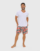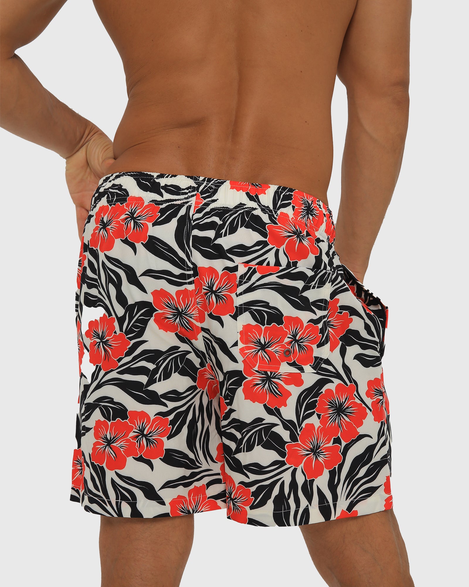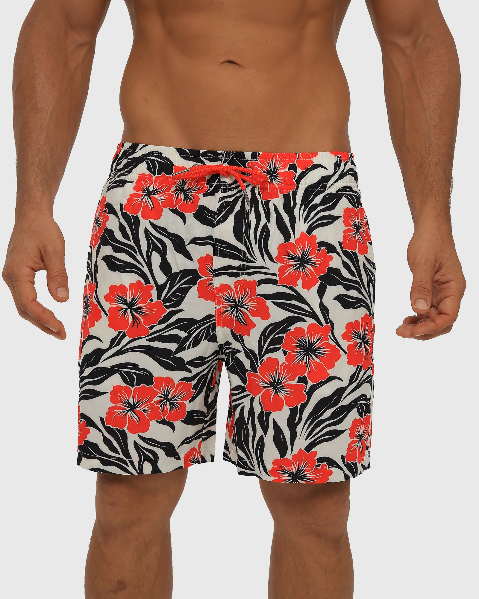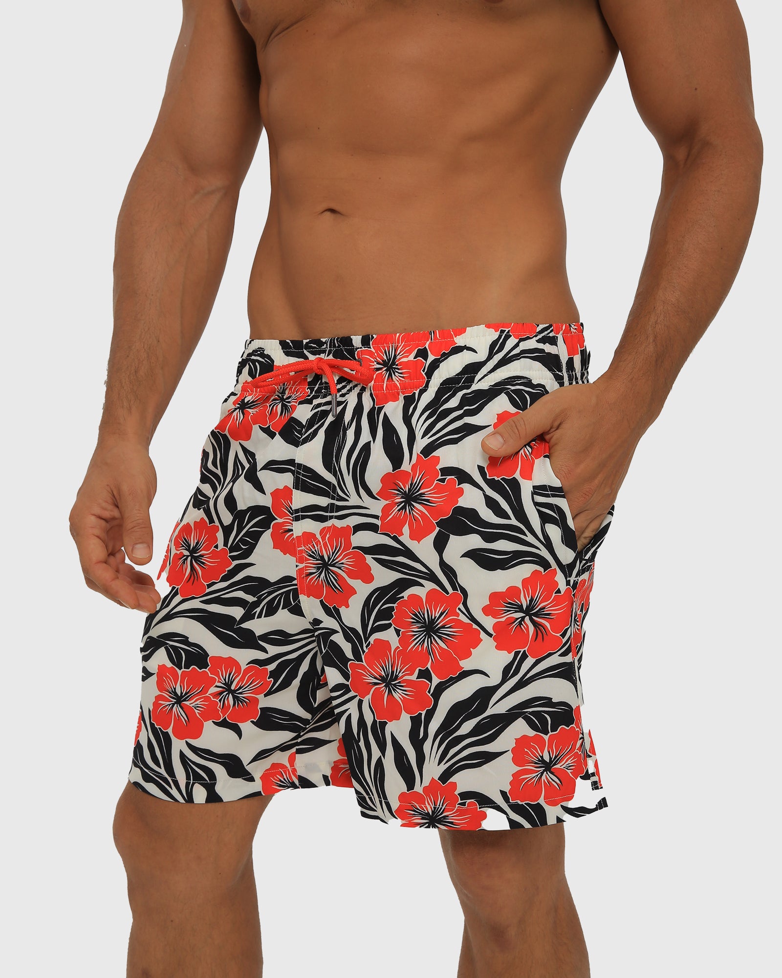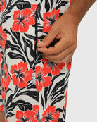Stand out this summer with the Peruvian Swim Shorts, featuring bold red florals and black leaves on a cream base. Designed for comfort and movement with 4-way stretch fabric and a mesh-free lining.