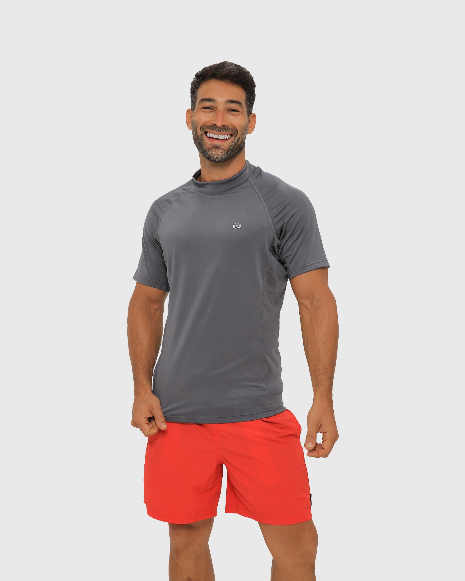 Stay protected and comfortable with the Short Sleeve Rash Vest by Coast Clothing. Designed in a sleek dark grey, this performance piece is perfect for long days in the sun, on the sand, or in the surf.