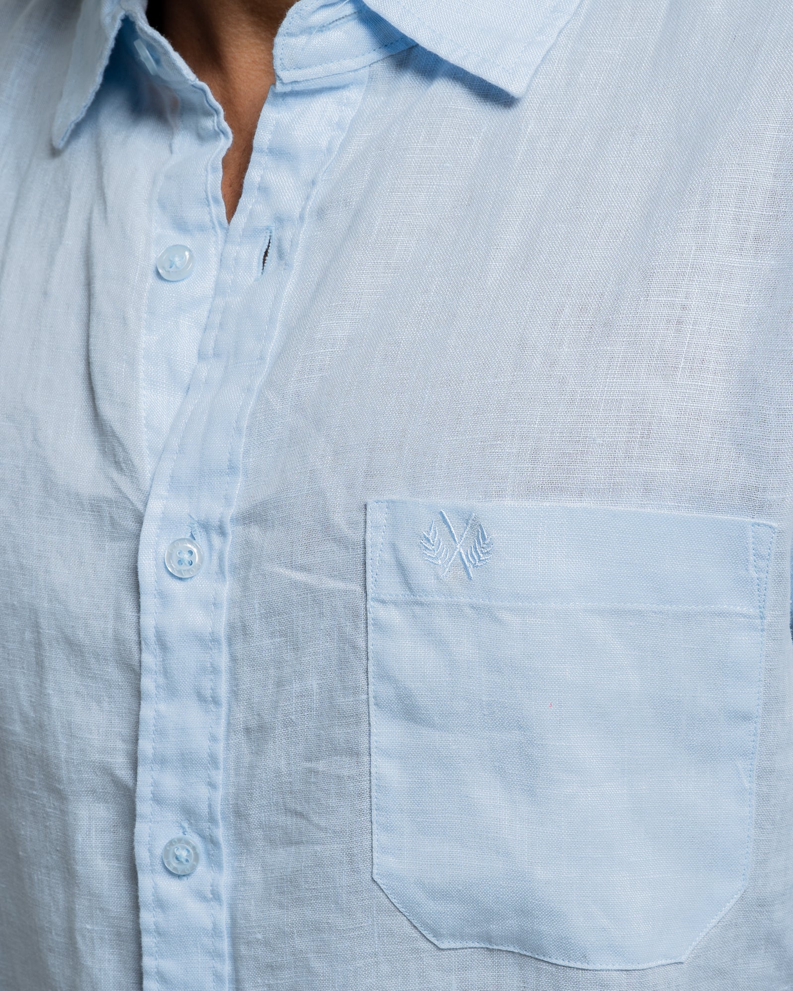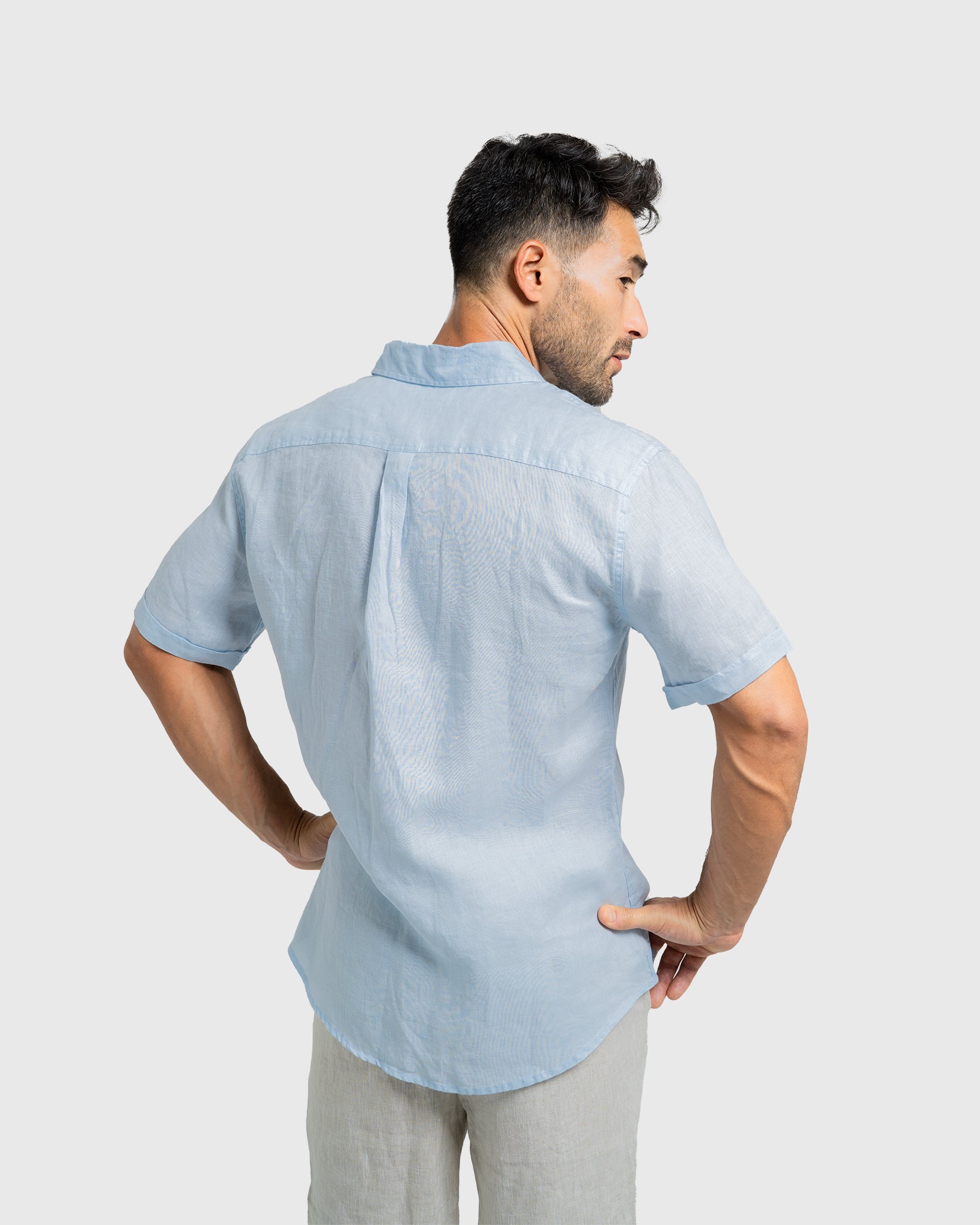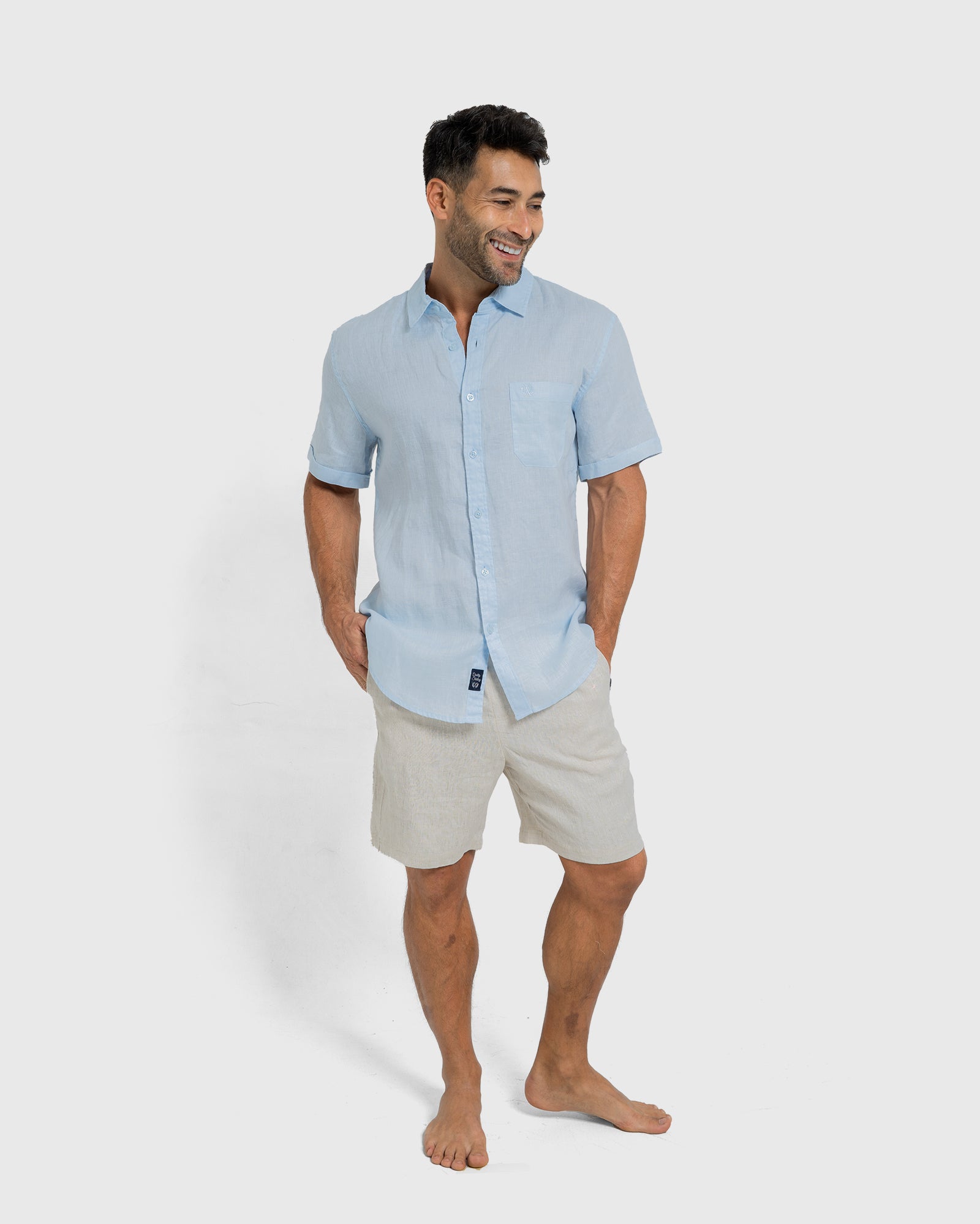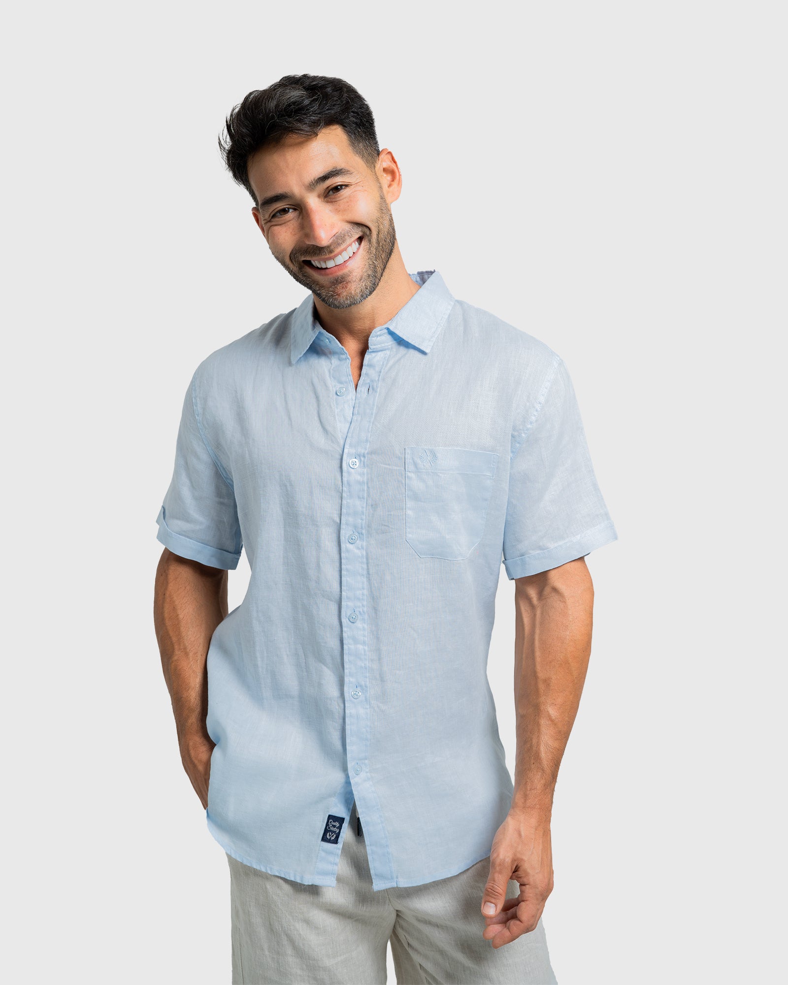 Men's Short Sleeve Linen Shirt - Sky Blue