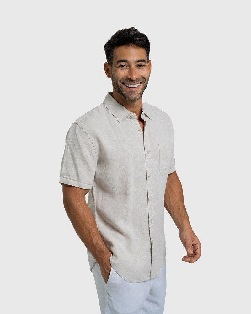 Stay cool and look sharp with Coast Clothing Co.'s Short Sleeve Linen Shirts. Designed in Australia for a relaxed coastal lifestyle, these shirts are crafted from breathable, natural French linen—ideal for warm days, holidays, and everyday ease. With tailored fits, timeless colours, and subtle detailing, they offer the perfect balance of comfort and resort-ready style. Dress them up or down for effortless summer dressing.