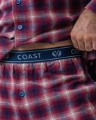 The Flinders Button-thru Flannel PJ Set by Coast Clothing Co. are made from 100% cotton, they are the optimal men’s pyjama set for year round comfort, these men’s pyjamas are perfect if you are wanting to hang out at home or laze around the loungeroom in ultimate comfort. The Flinders Button-thru Flannel men’s sleepwear set includes a button through long-sleeve Flannel top and flannel pants with white and red tones, with the iconic Coast Clothing branded elastic waistband. The Flinders Button-thru men’s pyjamas is the Australian’s go to choice for not only looking good around the home but sleeping well this year too!