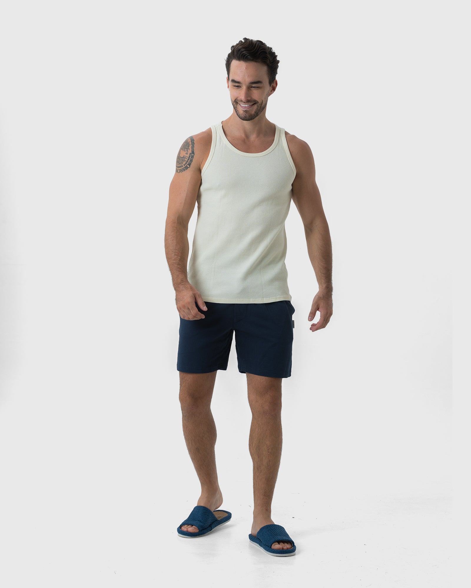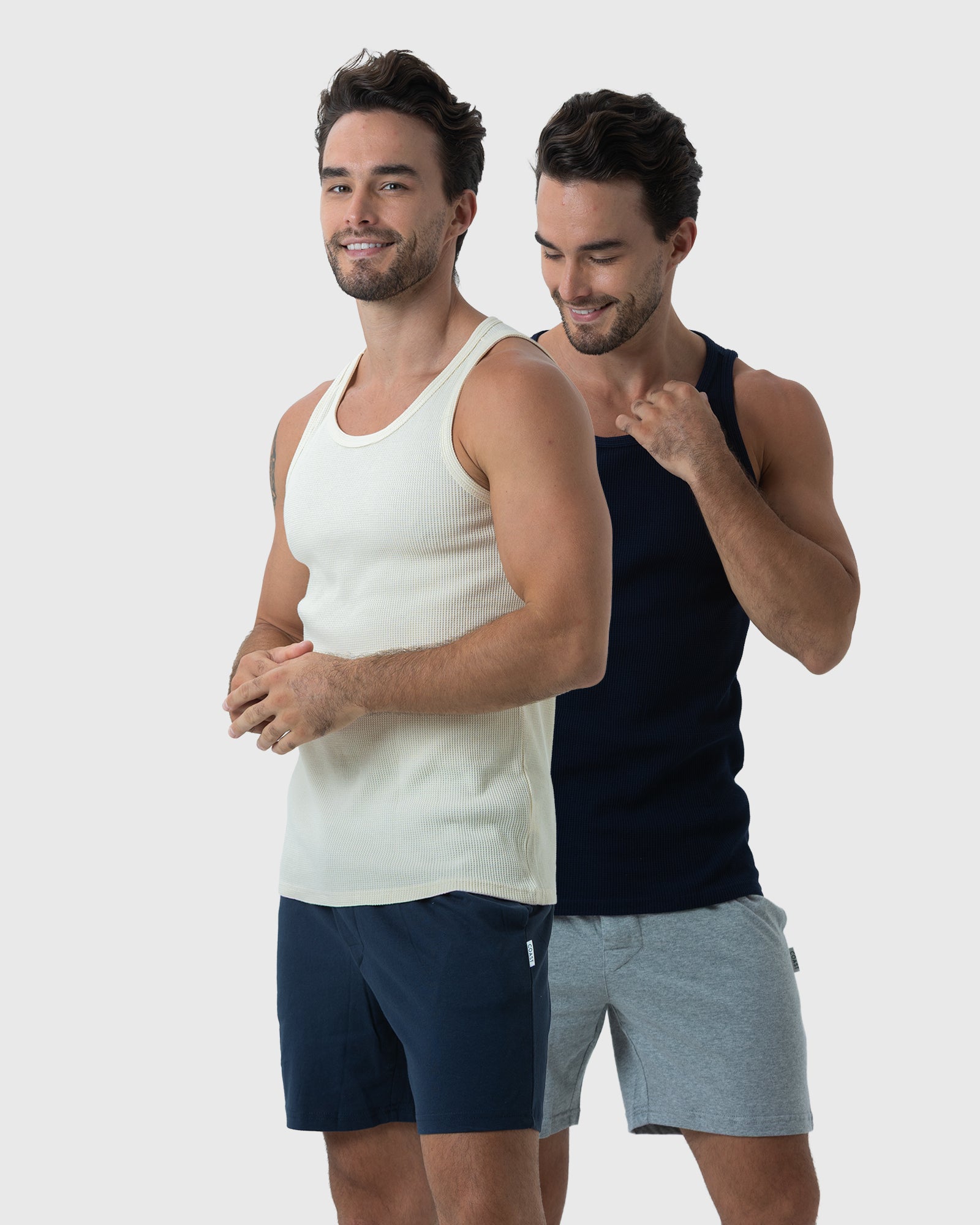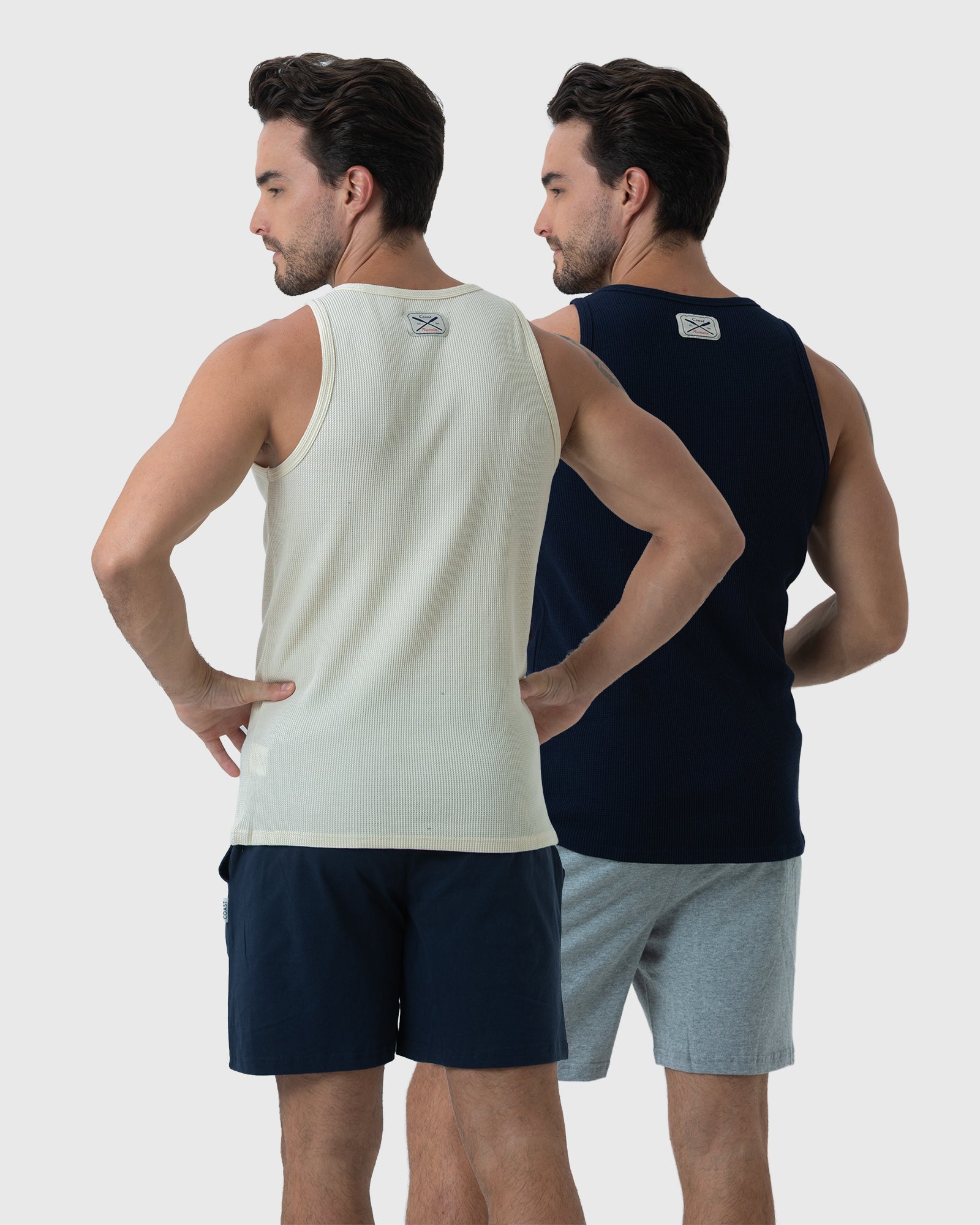 The 2 Pack Tank Tops from Coast Clothing are snug-fitting tank singlets perfect for day or night. The 2 Pack comes with 2 colours in the box, Navy & Ecru for any occasion. Perfect for nighttime or the beach, these versatile tank tops are made from fashionable cotton waffle so you can wear them just about anywhere. With 5% Spandex to maintain their shape, your trusty Tank Tops from Coast Clothing will have you comfortable and prepared all year round.