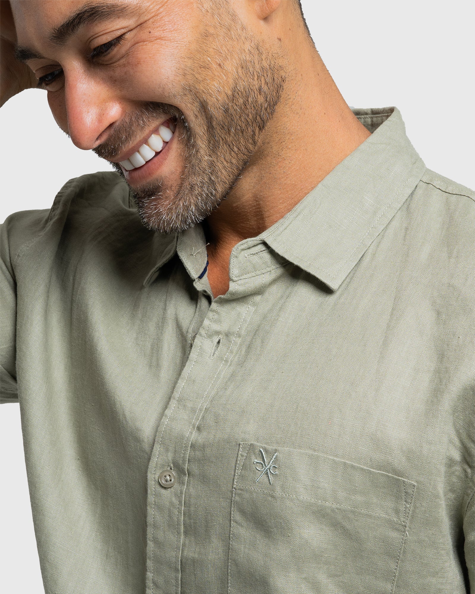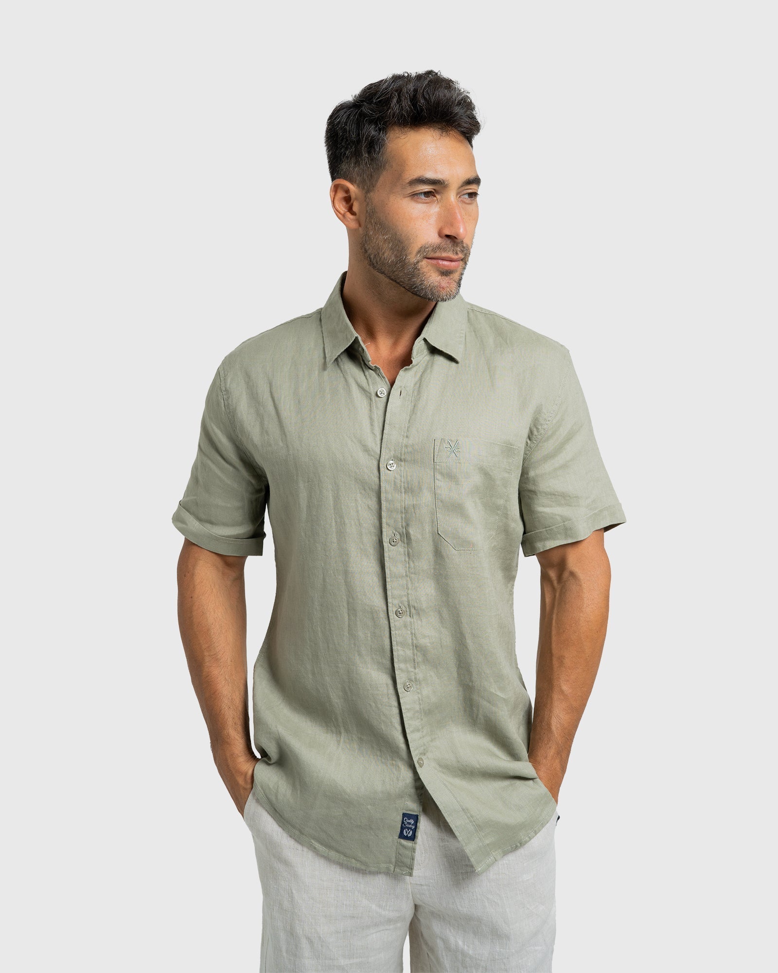 Men's Short Sleeve Linen Shirt - Cedar Green
