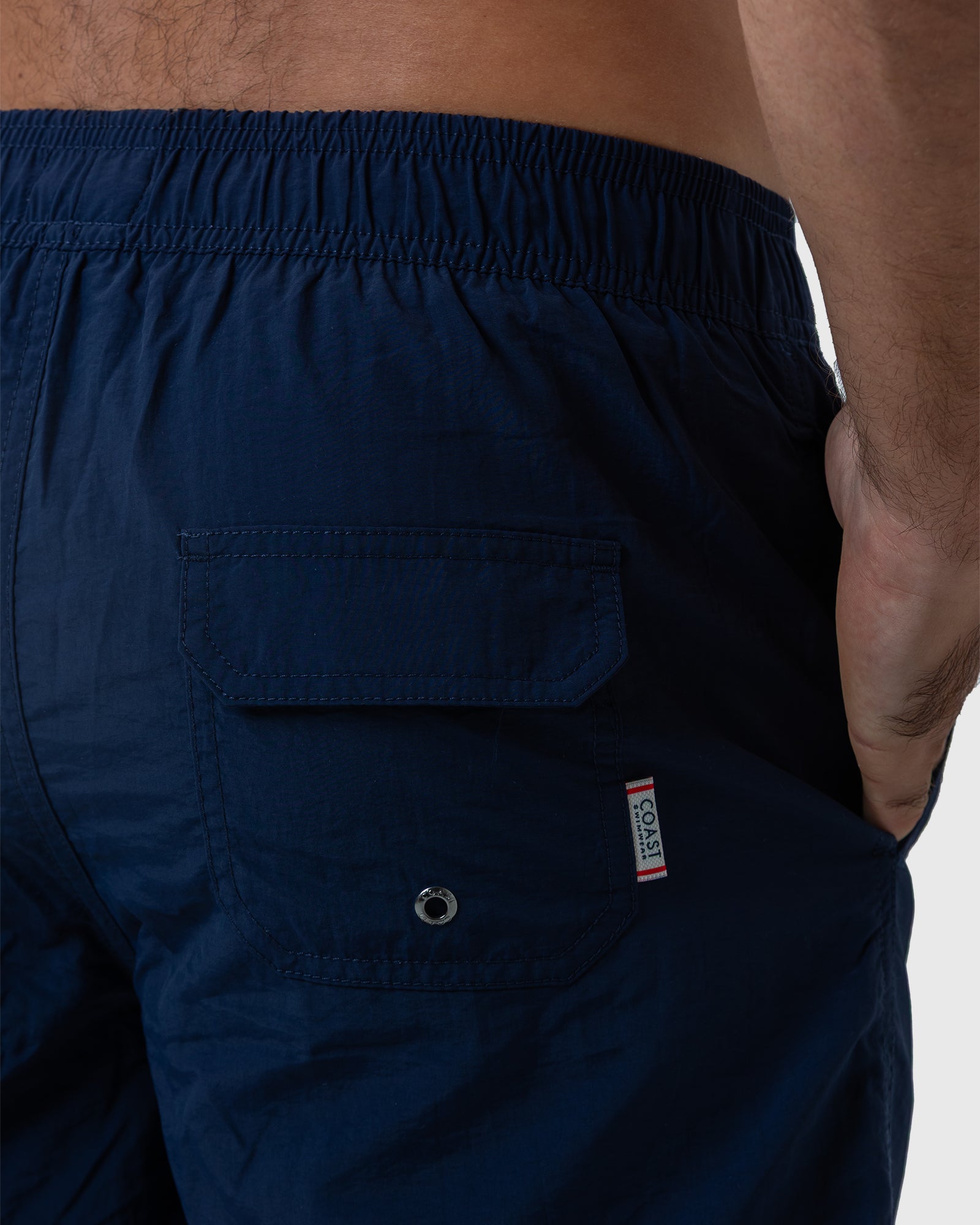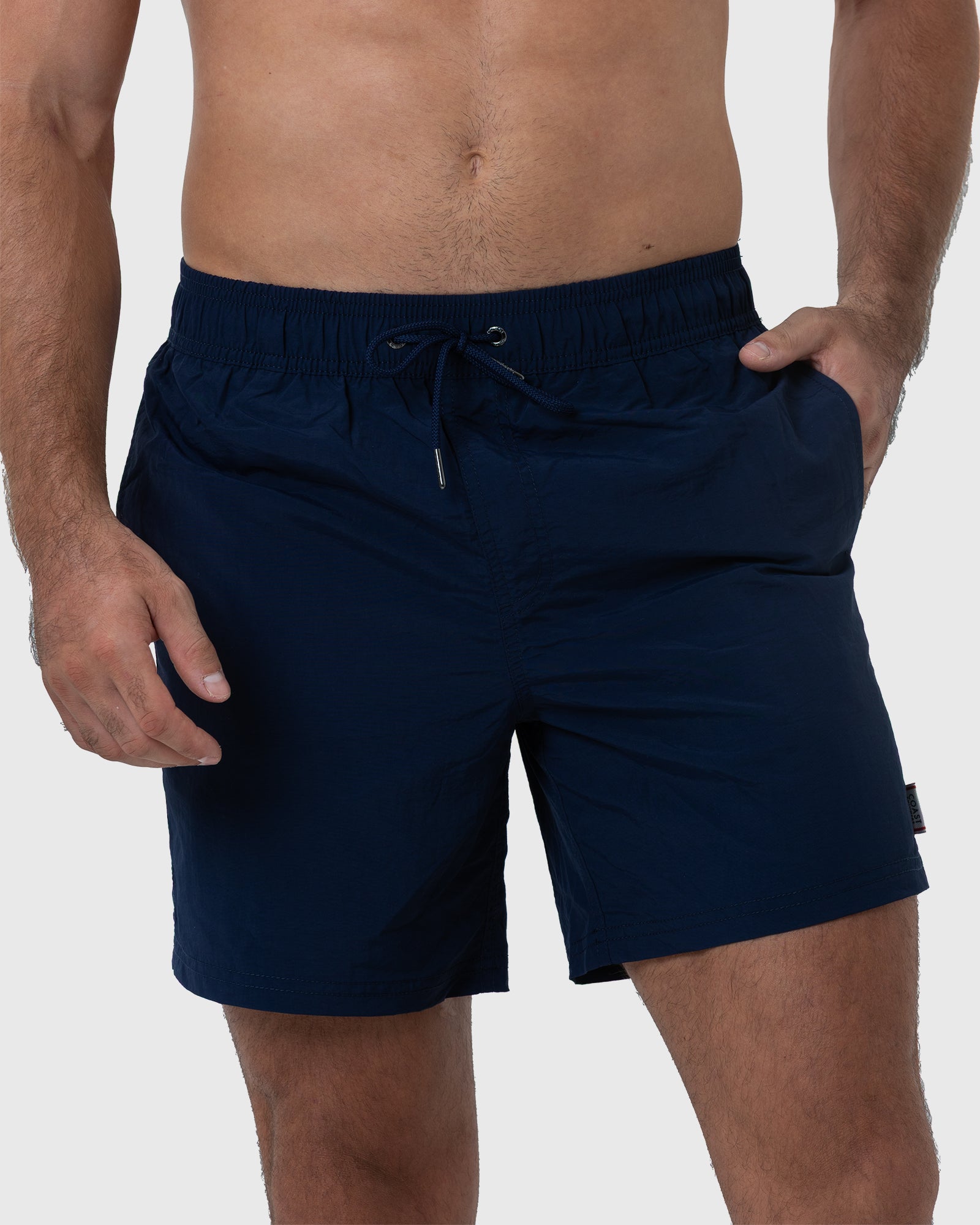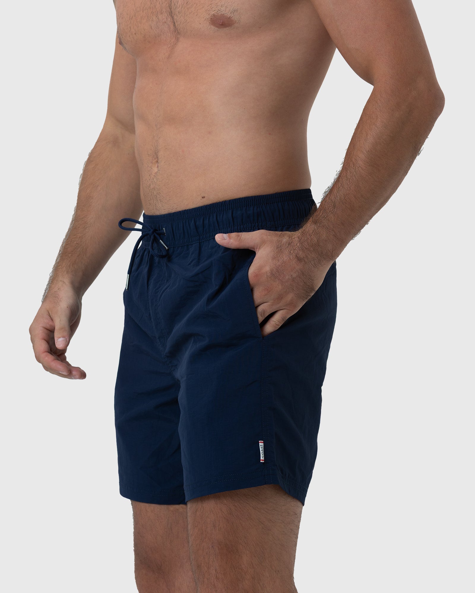 The Essential Navy Swim Shorts extend beyond being just beachwear; they effortlessly transition from seaside lounging to various activities, showcasing their versatility. The discreetly placed Coast logo on the side seam speaks volumes about the brand's commitment to quality and style, adding a touch of sophistication to your beach attire.