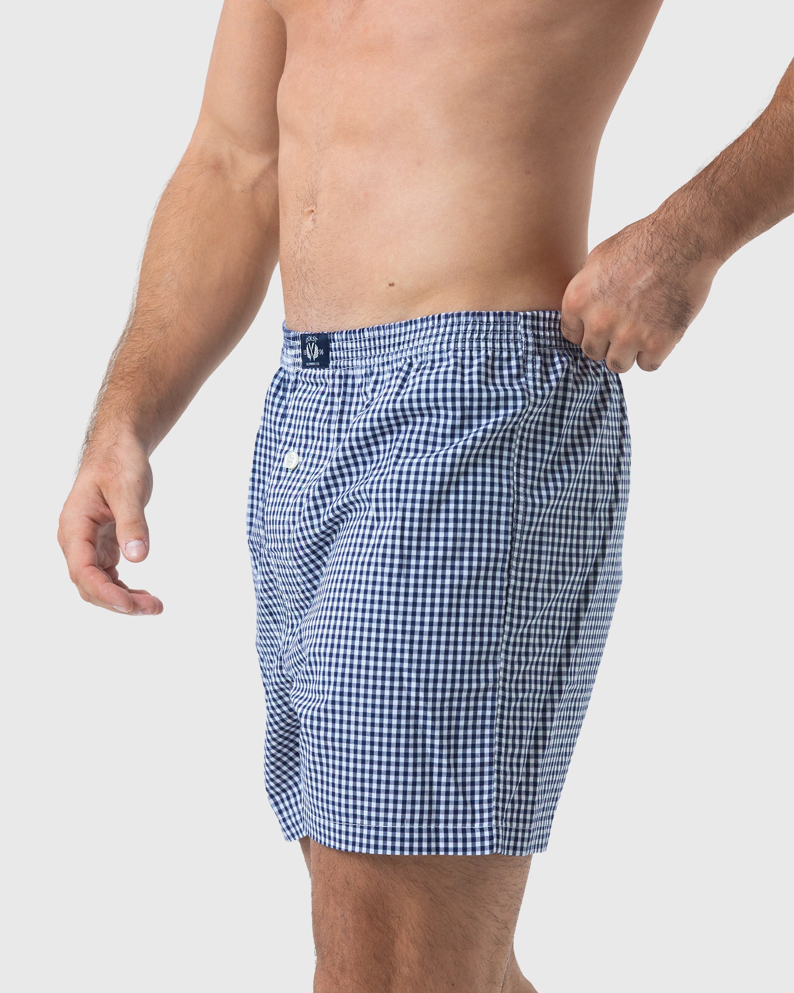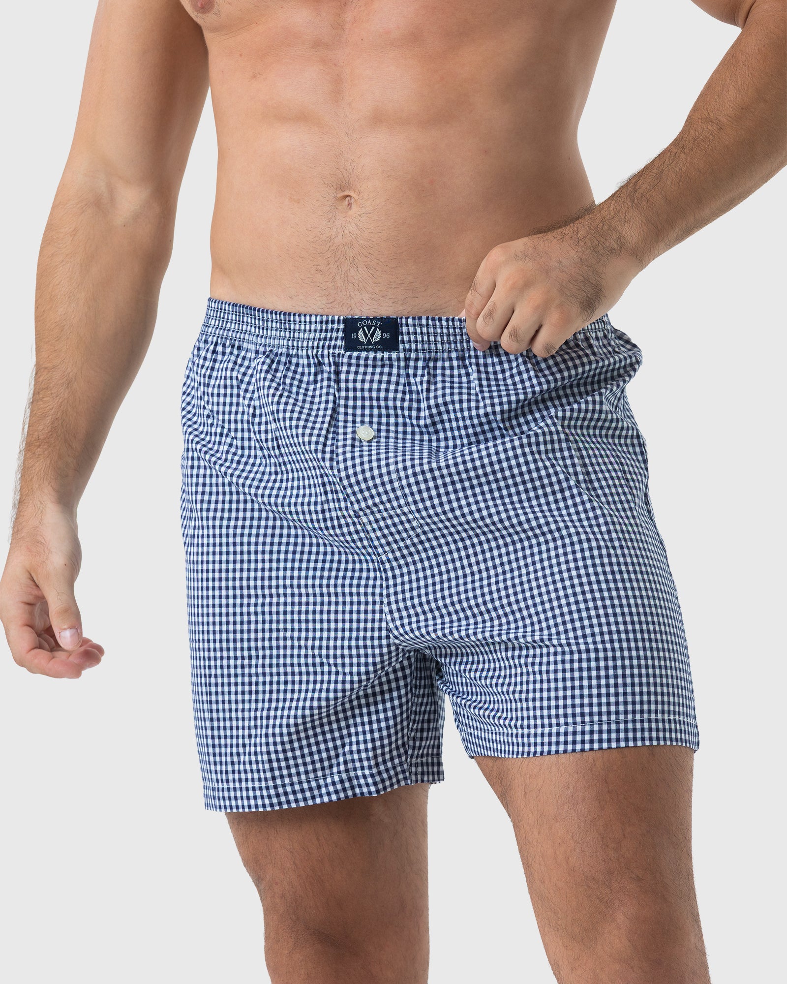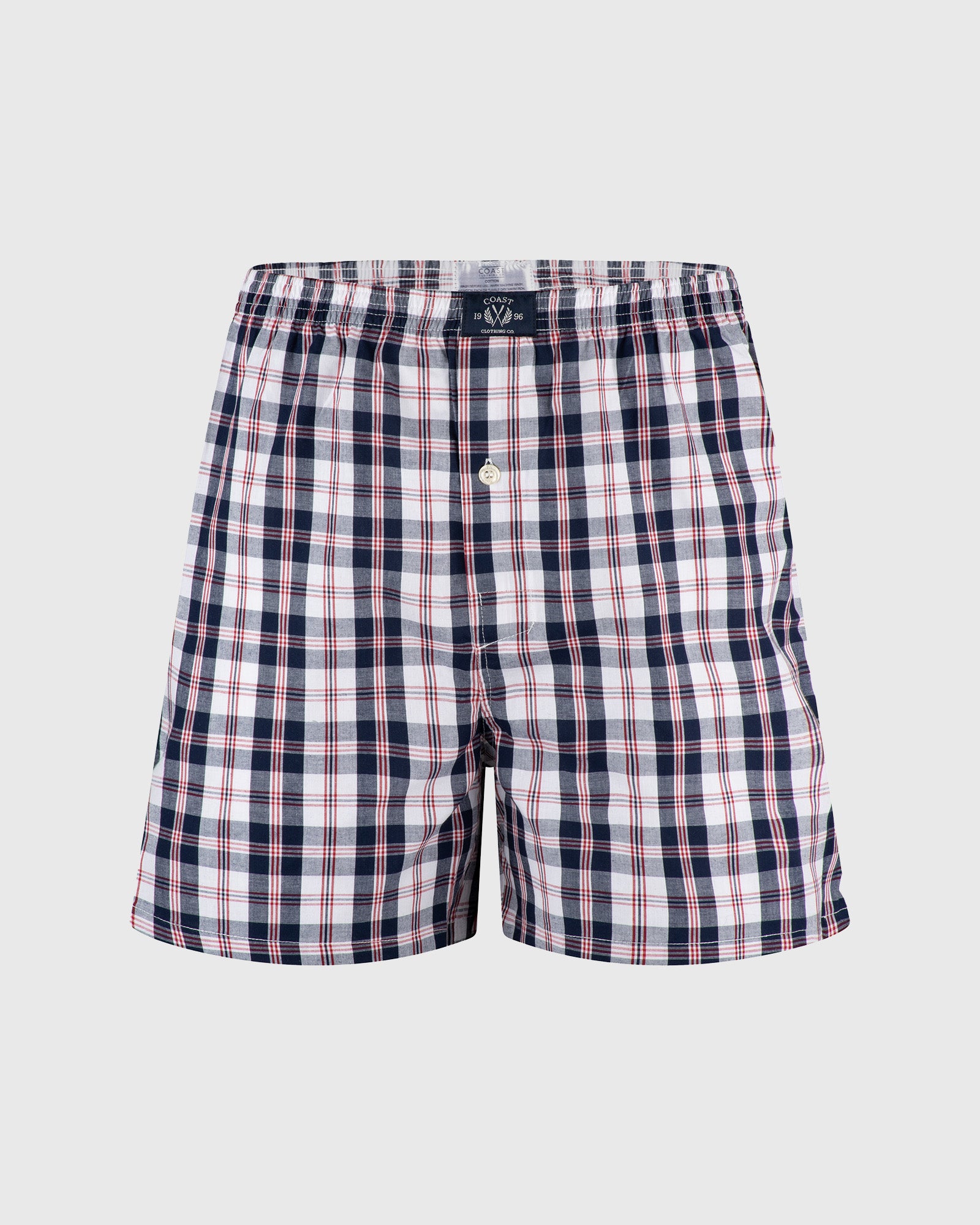 Lay the basis to your wardrobe with the premium quality of these Woven Check Boxers 2Pack. The premium 100 percent cotton build makes these Woven Check Boxers 2Pack from Coast Clothing both lightweight and soft, keeping you comfortable throughout the day. The elastic waistband is designed to hug your waist without constricting it and double-stitched hems will keep the underwear intact through months of regular wear. Fashioned with a mini-check, plaid print, and relaxed fit, the pair is an investment in enduring luxury and comfort.